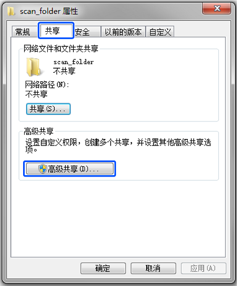 在共享标签上单击高级共享。