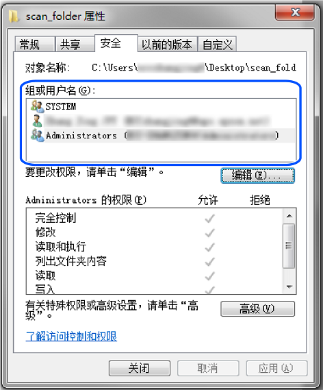 文件系统访问权限(安全):不添加或添加允许访问的用户名/组名