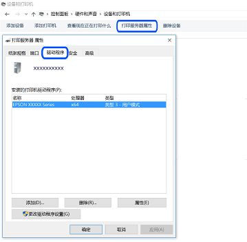 单击驱动程序标签。如果本产品名称显示在列表中,则表明您的计算机上已安装了正版爱普生打印机驱动程序。