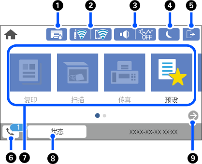 显示打印机状态屏幕。 您可以检查大致墨量及维护箱的大致使用寿命。 |