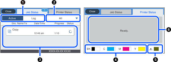 ili kuonyesha menyu ya Hali ya Kazi.Unaweza kukagua hali kichapishi au kazi.