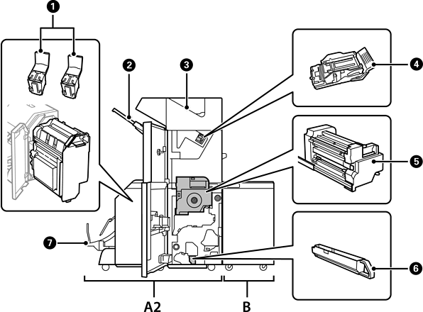 Voor bediening van de nietmachine of boekjesmaker moet u de brugeenheid installeren. |