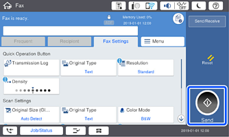 Als een bericht wordt weergegeven voor het verzenden of ontvangen van faxberichten, zoals in het volgende scherm wordt getoond, is de verbinding tot stand gebracht.