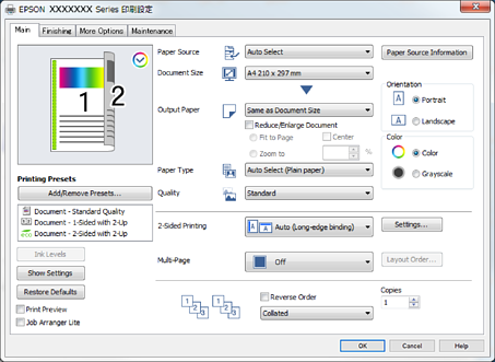 Selecteer Voorkeuren of Eigenschappen om het venster van het printerstuurprogramma te openen.