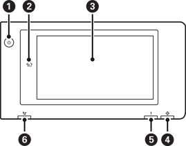 Touchscreen Hierop worden de instellingsitems en berichten weergegeven. Wanneer er gedurende een bepaalde periode geen bewerkingen worden uitgevoerd, gaat de printer in slaapstand en wordt het scherm uitgeschakeld. Tik op het touchscreen om het scherm in te schakelen. Afhankelijk van de huidige instellingen wordt de printer uit de slaapstand gehaald als u op de aan/uit-knop drukt. |