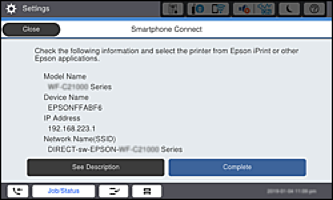 You only need to make these settings for the printer and the smart device that you want to connect to once. Unless you disable Wi-Fi Direct or restore the network settings to their defaults, you do not need to make these settings again.