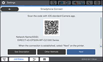 Utilitzeu l'aplicació de la càmera per a iOS 11 o posterior. No podeu connectar-vos a la impressora mitjançant l'aplicació de la càmera per a iOS 10 o versions anteriors. A més, no podeu connectar-vos mitjançant una aplicació per escanejar codis QR. Si no podeu connectar, seleccioneu Altres mètodes al tauler de control de la impressora. Consulteu l'enllaç d'informació relacionada a continuació per a més detalls sobre la connexió.