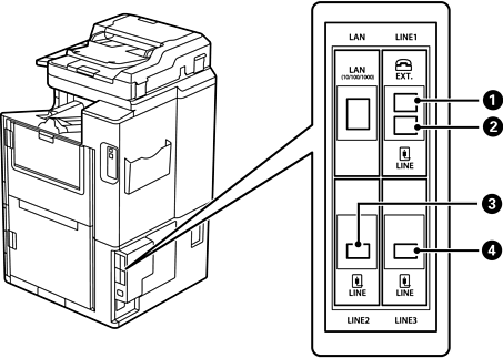 Connecteu la impressora a la línia de telèfon. El mètode per connectar el port és el mateix que per al port de LINE1. Per obtenir més informació, consulteu la informació relacionada a continuació. |