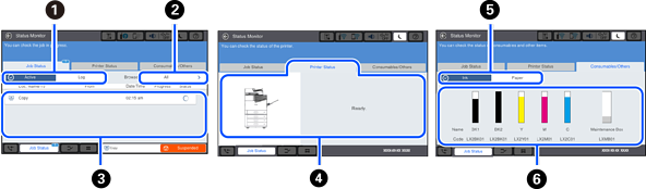 Canvia les llistes que es mostren. Si utilitzeu la ranura d'interfície addicional, podeu canviar de pestanyes per mostrar l'estat de l'element opcional. Consulteu la informació relacionada per saber-ne més. |