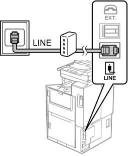 Connecteu un cable de telèfon des del mòdem DSL o l’adaptador del terminal ISDN al port LINE que hi ha al darrere de la impressora. Consulteu la documentació subministrades amb el mòdem o l’adaptador per obtenir més informació.