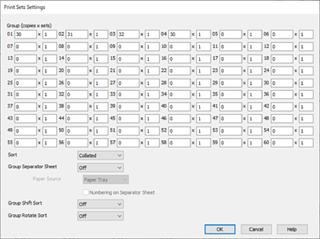Configureu cada element a la pantalla Ajustos de conjunts d'impressió i, a continuació, feu clic a D'acord.