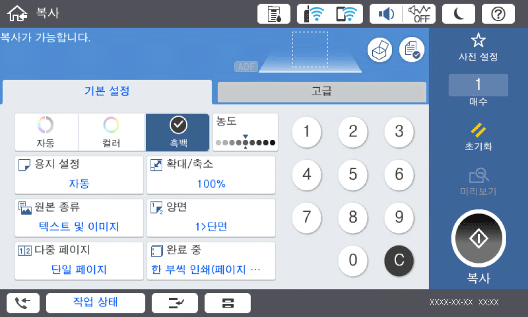 홈 화면에서 복사를 선택합니다.