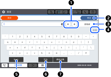 當您在進行網路設定等操作時,您可使用螢幕小鍵盤輸入字元與符號。