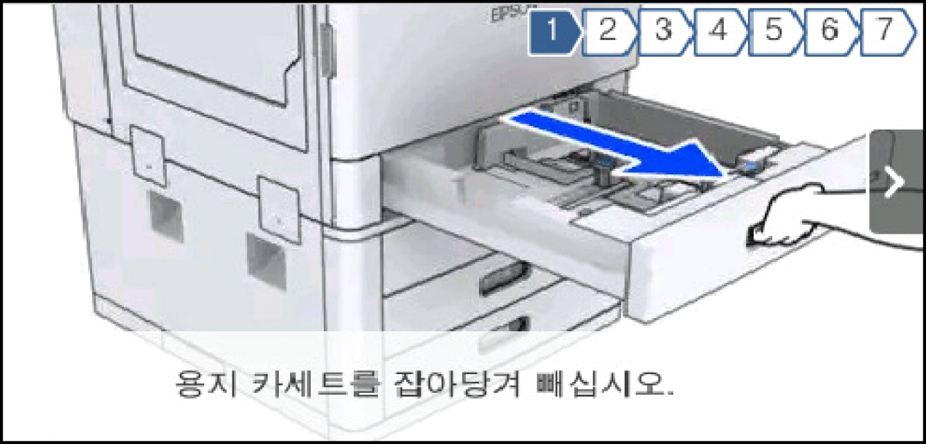 LCD 화면에서 용지 급지 또는 걸린 용지 제거와 같은 조작 방법의 애니메이션을 볼 수 있습니다.