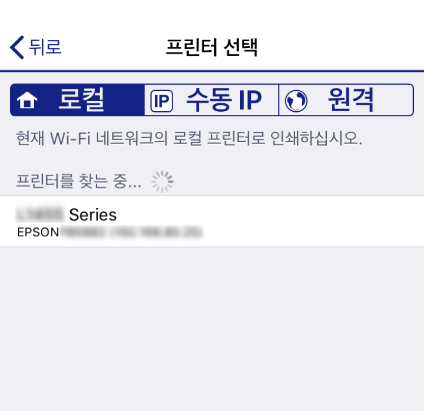 Epson의 인쇄용 앱 화면에서 프린터가 선택되지 않았습니다.를 누릅니다.