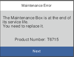 Keď sa objaví hlásenie s výzvou na výmenu skrinky údržby, pozrite si animácie zobrazené na ovládacom paneli. Potreba výmeny skrinky neznamená, že tlačiareň prestane fungovať v súlade so svojimi technickými parametrami. Záruka od spoločnosti Epson nekryje náklady súvisiace s touto výmenou. Ide o používateľom opraviteľnú súčasť.