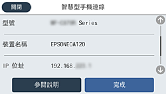 Epson Smart Panel 上,智慧型裝置會在印表機啟動時自動連接。