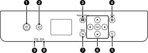 Tænder eller slukker for printeren. Tag strømkablet ud, når strømindikatoren er slukket. |