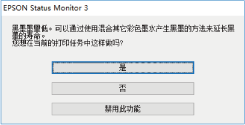 选择继续使用剩余的黑色墨水进行打印。下次打印类似任务时会显示此窗口。 |