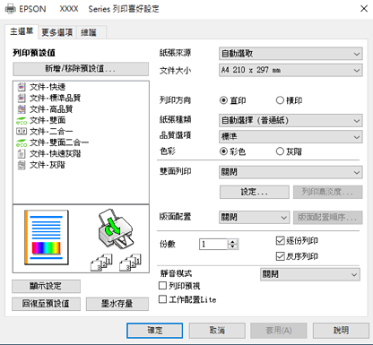 有關印表機驅動程式的詳細資訊,請參閱功能表選項。