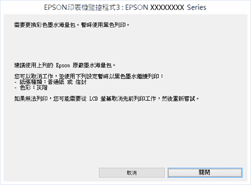 顯示下列視窗時,請取消列印。然後,再次列印。