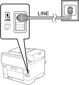 將電話線從電話壁式插孔或 PBX 連接埠連接至印表機背面的