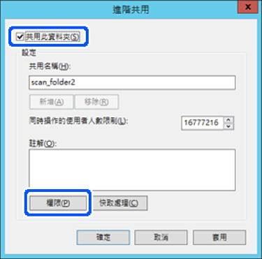 若未顯示,您可以按下[編輯]來新增權限。詳細資料,請參考「相關資訊」。