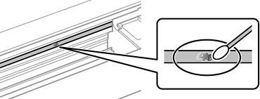 請小心不要觸碰到軌道 (B)。否則,您可能會無法列印。請勿清除軌道上的油脂,因為這是印表機運作時必要的物質。