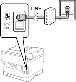 將電話線從 DSL 數據機或 ISDN 終端機配接器連接至印表機背面的 LINE 連接埠。如需詳細資訊,請參閱數據機或終端機配接器隨附的說明文件。