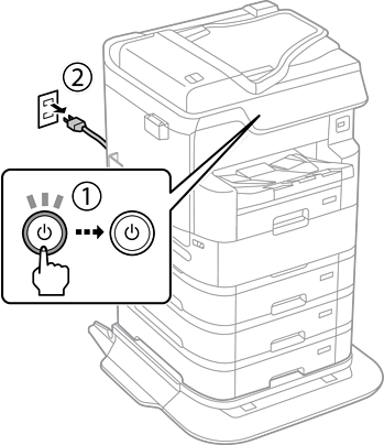 כבה את המדפסת באמצעות לחיצה על לחצן