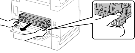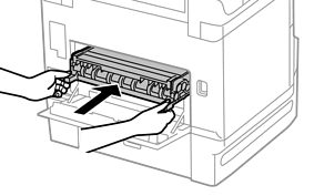 סובב את המדפסת לצד שני, ופתח את מכסה אחורי 1.