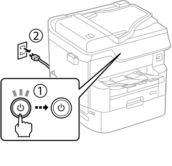 כבה את המדפסת באמצעות לחיצה על לחצן