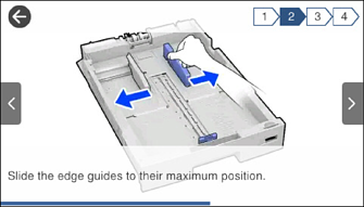 בחר מדריך בתחתית מסך התפעול כדי להציג אינמציה המתאימה להקשר. שים לב לכך שהאנימציה תלויה בדגם המדפסת.