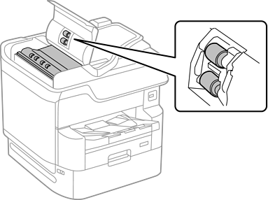 השתמש בסמרטוט רך ולח כדי לנקות את הגלגלת ואת פנים מזין המסמכים האוטומטי.