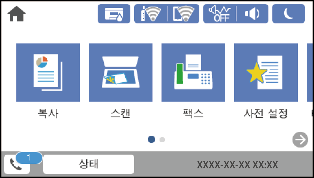 *1: 팩스 저장/전달 설정이 설정되어 있지 않거나, 외장 메모리 장치 또는 컴퓨터에 저장하는 동안 수신 문서를 인쇄하도록 설정되어 있는 경우입니다.