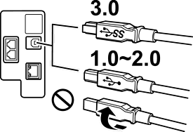 使用 USB 1.0 到 2.0 的纜線時,請注意插入方向,否則印表機可能會損壞。