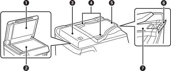 ADF-laitteen (automaattisen arkinsyöttölaitteen) kansi (F) |