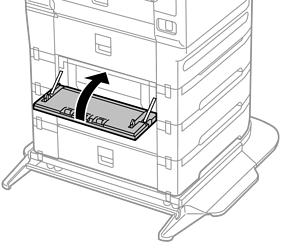 प्रिंटर घुमाएँ और फिर प्रिंटर का पिछला कवर खोलें।
