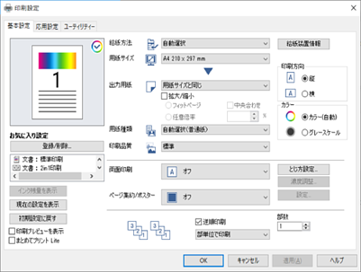 各項目の詳細は、プリンタードライバーのメニュー説明をご覧ください。