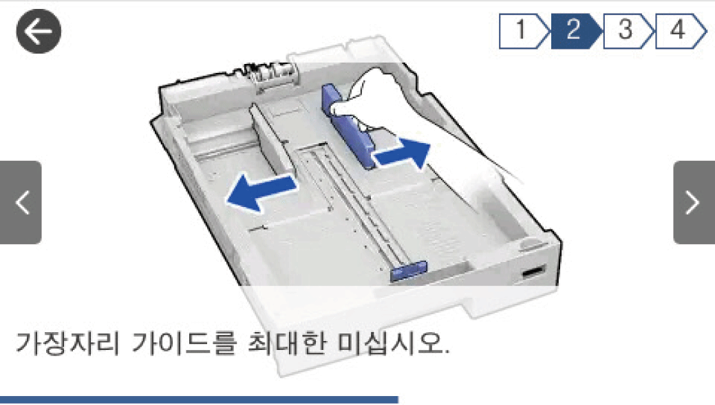 작동 화면 하단의 방법 선택: 상황에 맞는 애니메이션을 표시합니다. 애니메이션은 프린터 모델에 따라 다릅니다.