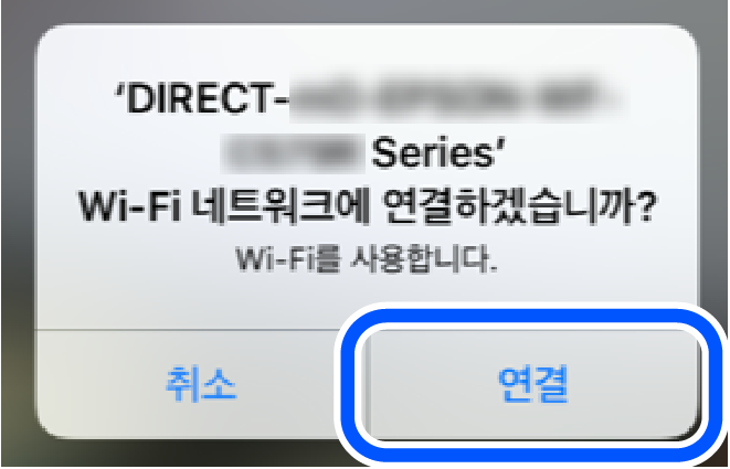 전에 프린터에 연결된 스마트 기기의 경우, 스마트 기기의 Wi-Fi 화면에서 네트워크 이름 (SSID)을 선택합니다.