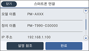 프린터를 선택하려면 프린터의 제어판에 표시된 정보를 참조하십시오.