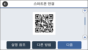 iOS 11 또는 이후 버전의 카메라 응용 프로그램을 사용하십시오. iOS 10 이하의 카메라 응용 프로그램을 사용하면 프린터에 연결할 수 없습니다. 또한 응용 프로그램으로 QR 코드를 스캔할 수 없습니다. 연결할 수 없으면 프린터 제어판에서 다른 방법을 선택하십시오. 연결에 대한 자세한 내용은 아래의 관련 정보 링크를 참조하십시오.