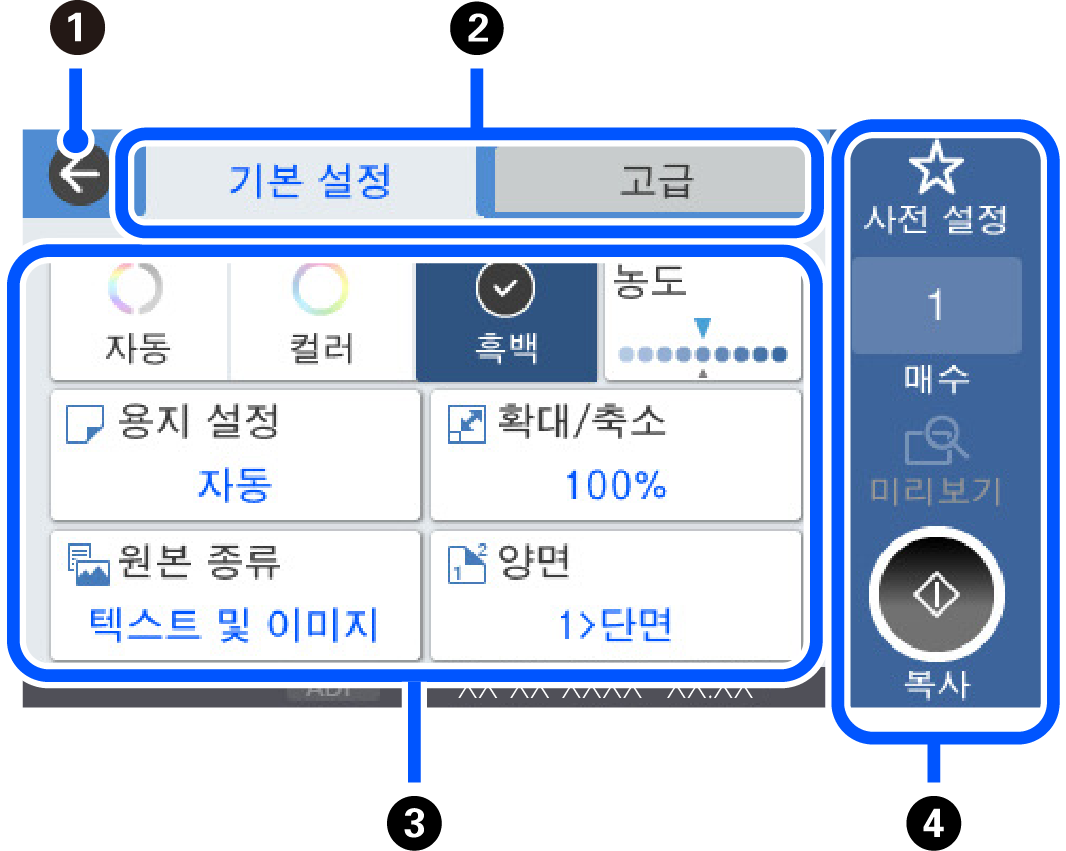 인쇄 매수를 입력할 수 있는 화상 키패드를 표시합니다. |