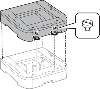 Se usa várias unidades de cassete de papel, empilhe todas as unidades de cassete de papel e fixe-as com os parafusos.