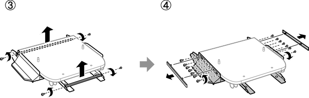 Pirms printera pārvietošanas noņemiet printera statīvu. Veiciet printera pārvietošanas procedūru un pēc tam veiciet nākamajos attēlos parādītās darbības.