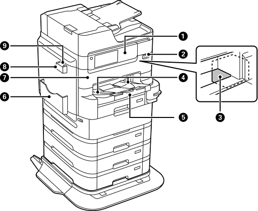 支撐退出的紙張。當您開始列印大於 A4 大小的紙張時,此托盤會自動退出。若要儲存托盤,手動將其推入。 |