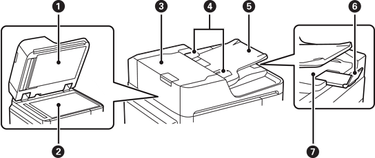 ADF (自動進紙器) 護蓋 (F) |