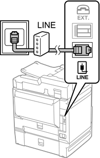 Подключите телефонный кабель к модему DSL или адаптеру терминала ISDN и к порту LINE на задней стороне принтера. Более подробные сведения см. в документации, поставляемой вместе с модемом или адаптером.