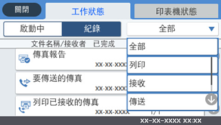 您可以檢查正在進行的傳真工作或檢查工作紀錄。